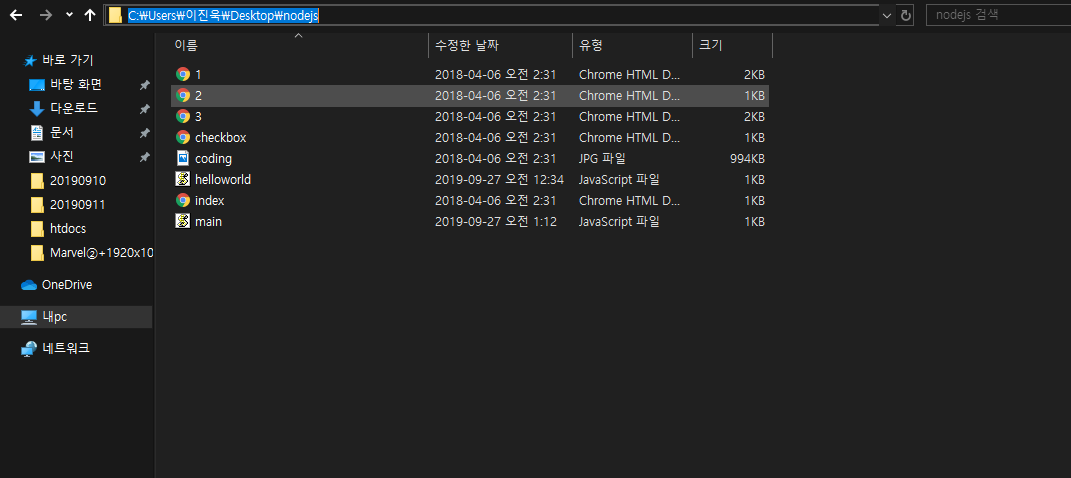 그 후에 바탕화면에 node.js라는 새폴더를 하나 만들어 줍시다.