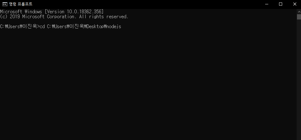 기본적으로 설치가 되어있는 장소로 가서 다시 바탕화면의 node.js의 경로로 바꾸는 작업입니다.