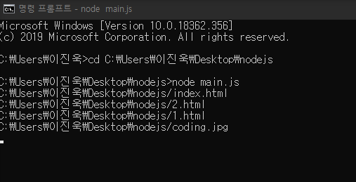 그다음에 명령 프롬포트로 가셔서 node main.js를 치시면 됩니다.