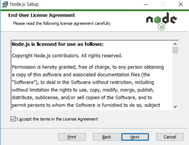 우선 node.js를 설치부터 합니다. 제가 지금 컴퓨터가 window10이기 때문에
