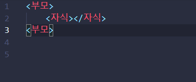 다음과 같이 <부모>와 <자식>이라는 두개의 태그가 있다고 봅시다.